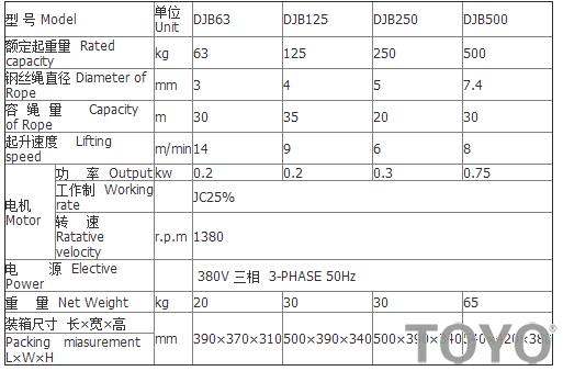 DJB電動絞車參數(shù)圖: